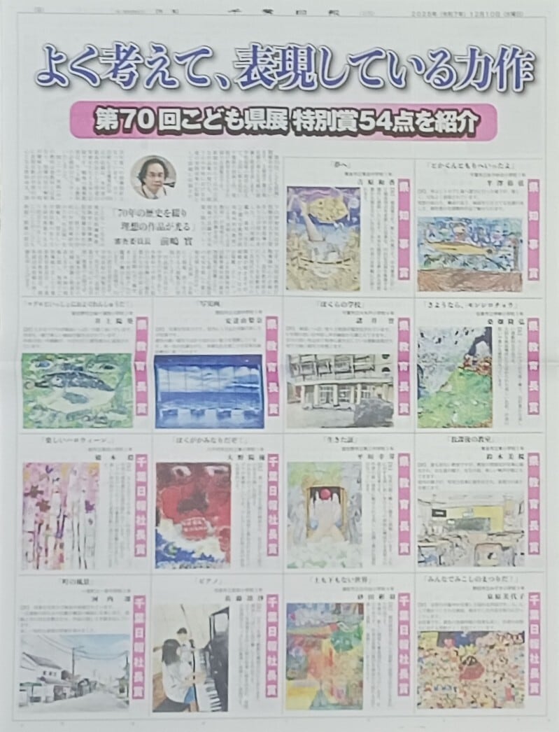 25/12/10付 千葉日報 第70回こども県展 特別賞入賞者作品54点を網羅した紙上展を掲載